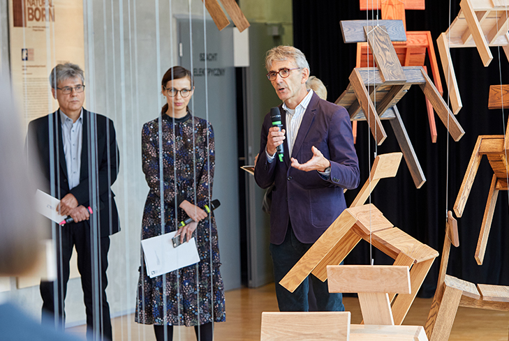Przygotowanie instalacji artystycznej promującej wykorzystanie dębu czerwonego w produkcji mebli oraz ideę odpowiedzialnego projektowania, stworzenie wystawy na warszawskiej ASP.